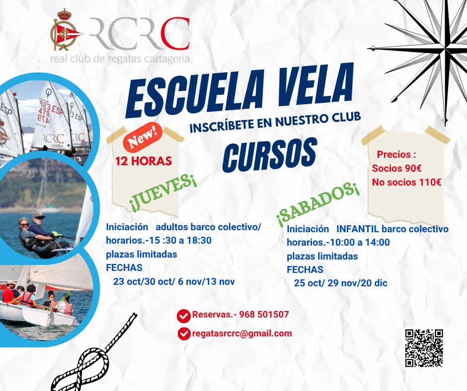 Real Club de Regatas de Cartagena – Octubre Curso de Iniciación a la Vela – Adultos Fechas y horarios: Contenido del curso (4 sesiones) Sesión 1 – Introducción a la vela y seguridad Presentación del material y tipos de embarcaciones. Normas básicas de seguridad en el mar. Conocimiento del viento y posiciones básicas de navegación. […]